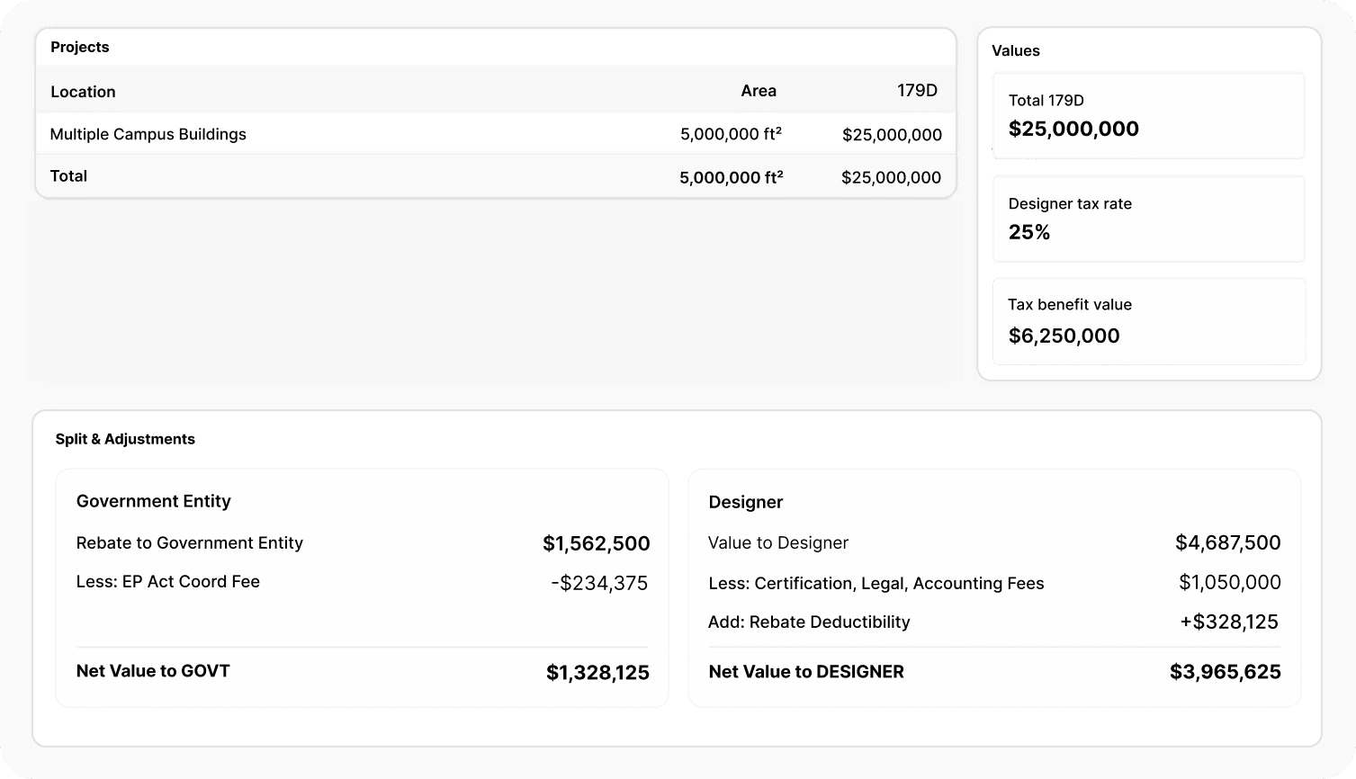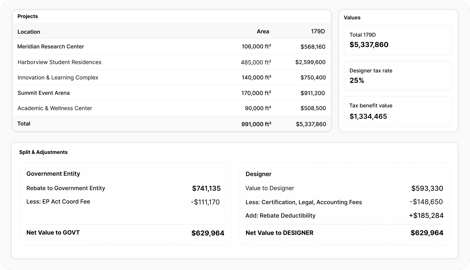 The Realizse Passport powers 179D tax benefit allocations with insurable, financeable contracts and audit-ready digital project passports for the benefit of all project stakeholders: Designers, Certifiers, and Building Owners (Tax-Exempt and Commercial).