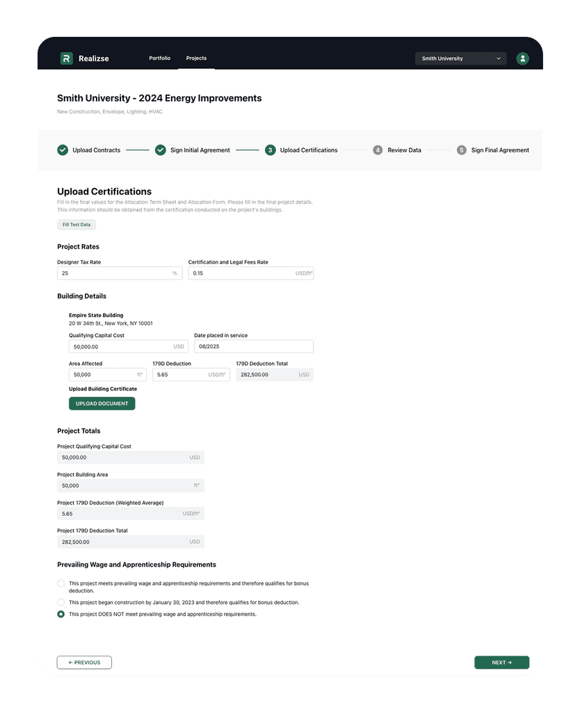 The Realizse 179D Registry delivers a streamlined, auditable infrastructure for scaling 179D allocations by providing: